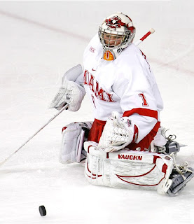 1. January 24, 2006: 2 goals in the final :22 by Mitch Ganzak and Marty Guerin lift the RedHawks past the Western Michigan Broncos 4-3. Read or watch and listen to Allen’s call.