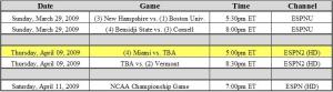 – Miami will play the early game on 4/9, at 5:00 pm.