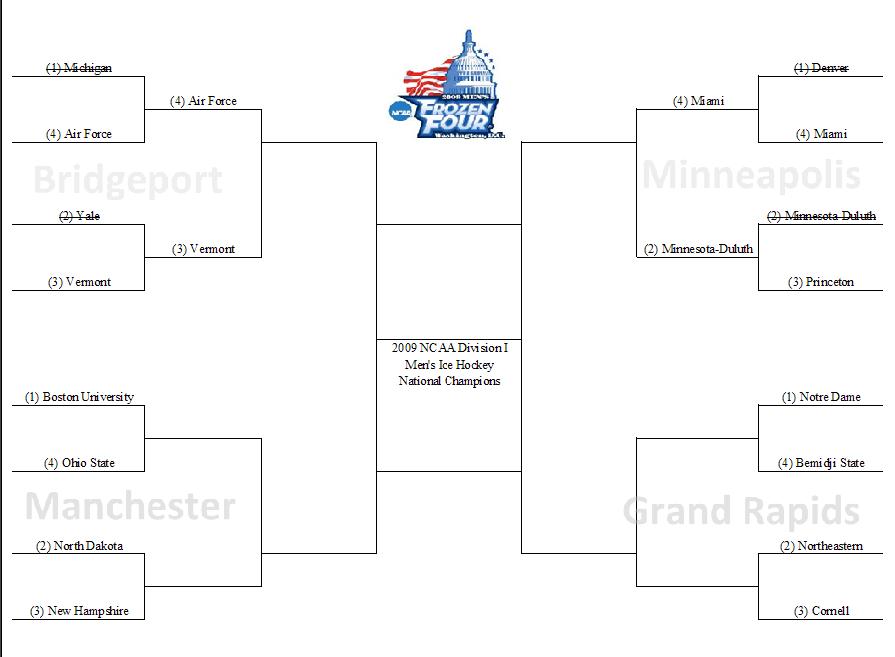 >As the show progresses, I’ll be updating the official brackets. Boston University is the number one overall seed in the tourney.