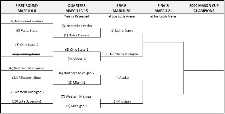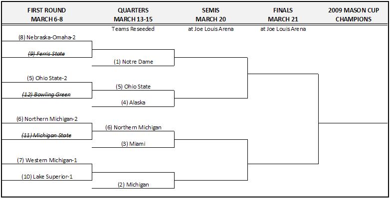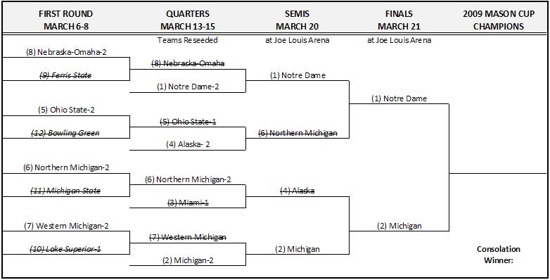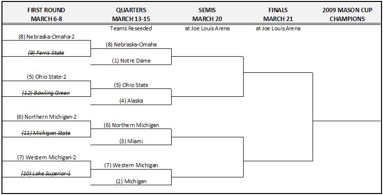 – Staying with the Quest for the Mason Cup, INCH has published their version of the CCHA Tournament preview. Here’s their take on the “Keys to the Game”: