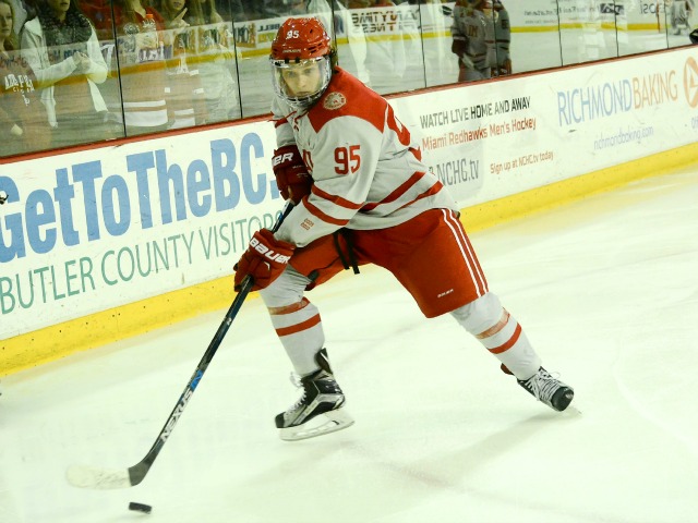 RedHawks freshman forward Jack Roslovic slammed home a bad-angle shot from the side of the net to give Miami its only lead of the game, 3-2 at the end of a power play with 2:35 remaining in the middle period.