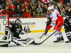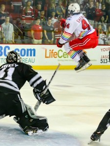 The RedHawks had tied the score at two and were pressuring the net for the go-ahead score.