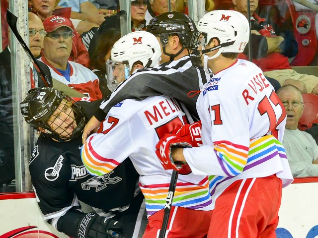 After the teams traded goals in the first period, Miami appeared to have taken a second-period lead when Gordie Green roofed one on a breakaway.