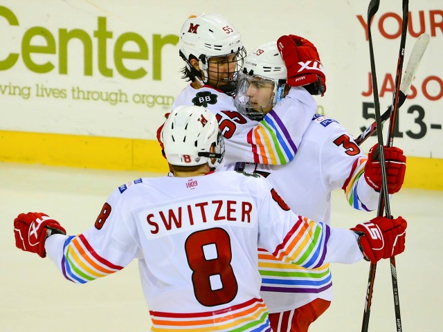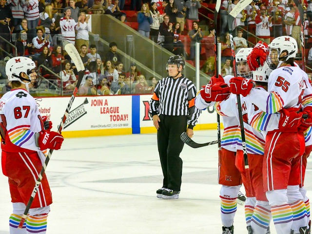 – The RedHawks donned ‘You Can Play’ jerseys in honor of Brendan Burke, who passed away 6½ years ago. Classy move by Miami to remember the former student manager.
