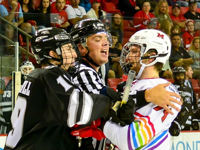 The RedHawks had two goals waved off, which was the final margin of defeat for in a 3-1 loss vs. No. 11 Providence at Cady Arena in the teams’ season opener.