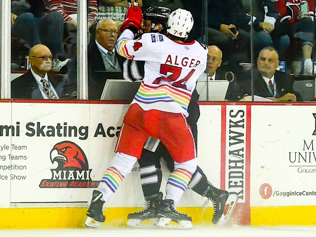 Miami (0-1) tied it when freshman Austin Alger skated laterally into the slot and whipped one just under the crossbar with 2:43 left in the opening period.