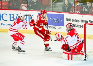 The RedHawks have trailed by at least three goals in three straight games – all losses – including a 4-3 defeat at Nebraska-Omaha on Saturday in which they trailed by four but scored three times in the third period to cut the final deficit to one.