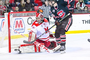 The RedHawks pulled Larkin with over six minutes left, and Jackson hit the empty net for the final tally.