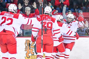 DEFENSEMEN: B+. Mahalak scored, Hutton’s play on the game-winner was amazing and Louie Belpedio picked up an assist on Mahalak’s goal. It was a good night for this group, as North Dakota finished with just 17 shots despite six power plays. The one blemish is that Rourke Russell did get beat on the third UND breakaway that led to a goal, and he also inadvertently took out his own goalie on that play.