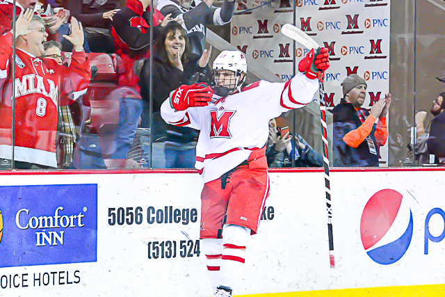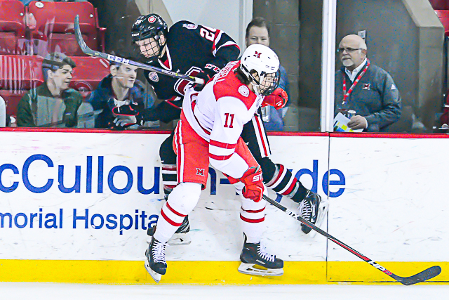 Miami (10-14-3) did battle back with a couple of second-period goals but could not generate the equalizer.