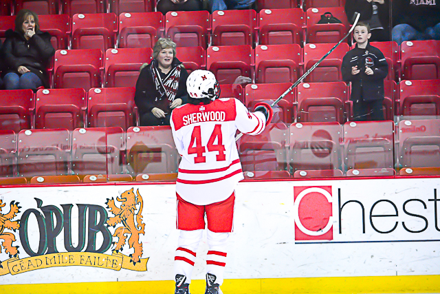 After five minutes of 5-on-5 overtime, Sherwood found the net in the 3-on-3 to give Miami the extra league point.
