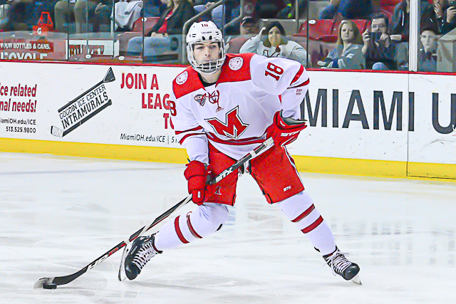 Miami’s Carson Meyer had a penalty shot early in the third period but was unable to capitalize.