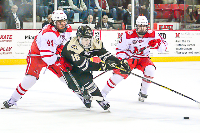 Ethen Frank streaked through the slot, took a feed from Austin Rueschhoff and beat Miami goalie Ryan Larkin on his backhand less than two minutes later to make it 2-1.