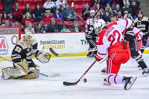 The RedHawks went up by two when Carter Johnson tipped home a blue-line blast by Louie Belpedio at the 1:46 mark of the second period for his first collegiate goal.