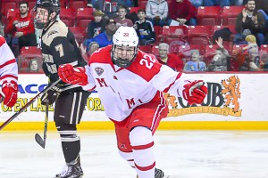 DEFENSEMEN: B+. Hutton and Belpedio both scored, and after the whole team struggled out of the game, the blueliners did a good job of limiting Western Michigan’s scoring chances. Hutton was exceptional in his own end and deserved first star, not third, as he won loose puck battles and muscled people off the puck all night. It was a physical game and this corps was up to the challenge.