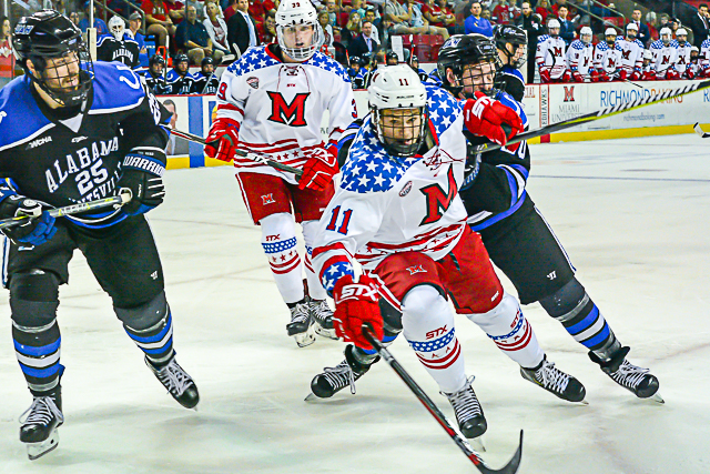 Posted on October 11, 2018, in 2018-19 and tagged 2018-19 miami redhawks, alabama-huntsville chargers, miami redhawks photos. Bookmark the permalink. Leave a comment.