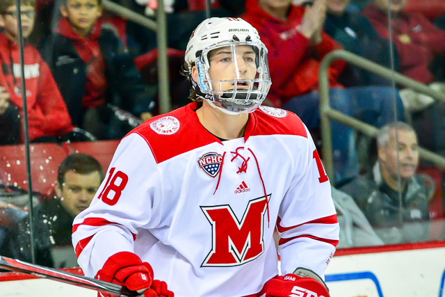 MU went up by two when a rebound off a blue line blast from Grant Frederic kicked out to Ryan Siroky, who shoveled it in off his backhand from the side of the goal eight minutes into the middle stanza.
