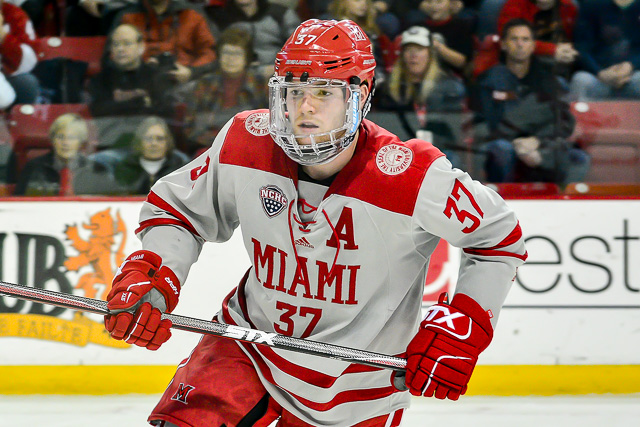 Following a scoreless first period, Miami (4-3) took the lead when Louie Belpedio juked at the blue line and whipped into the top corner of the net with 12:34 left in the second period.