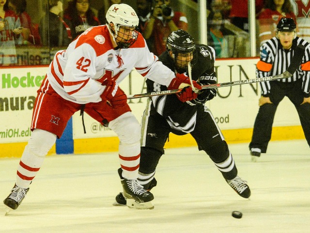 Fortunately for Miami fans, that attribute lives on through Cathy’s photography. Though she had no former training in that field, her knowledge of the game made her a natural, as she can anticipate plays as well as anyone at the rink, and that hockey acumen enables her to capture optimal images.