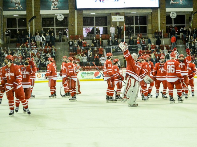 Denis may no longer be with us in body, but he lives on through Cathy’s hockey fervor every time the RedHawks take the ice in Oxford.