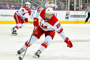 He eventually dropped the other two sports and was dominant on the ice his final two years of preps. His junior season he scored 22 goals and picked up 25 assists in 28 games, and he racked up 62 points including 46 helpers in 26 contests as a senior.