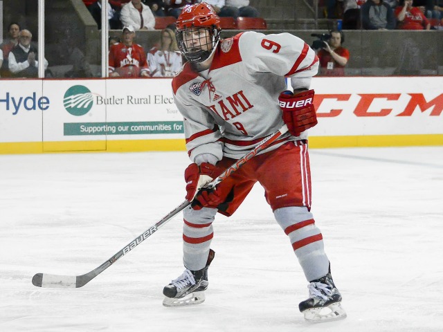 Miami (0-2) fell behind when Jack DeBoer banged home a rebound off a point-blank shot 9:19 into the first period.